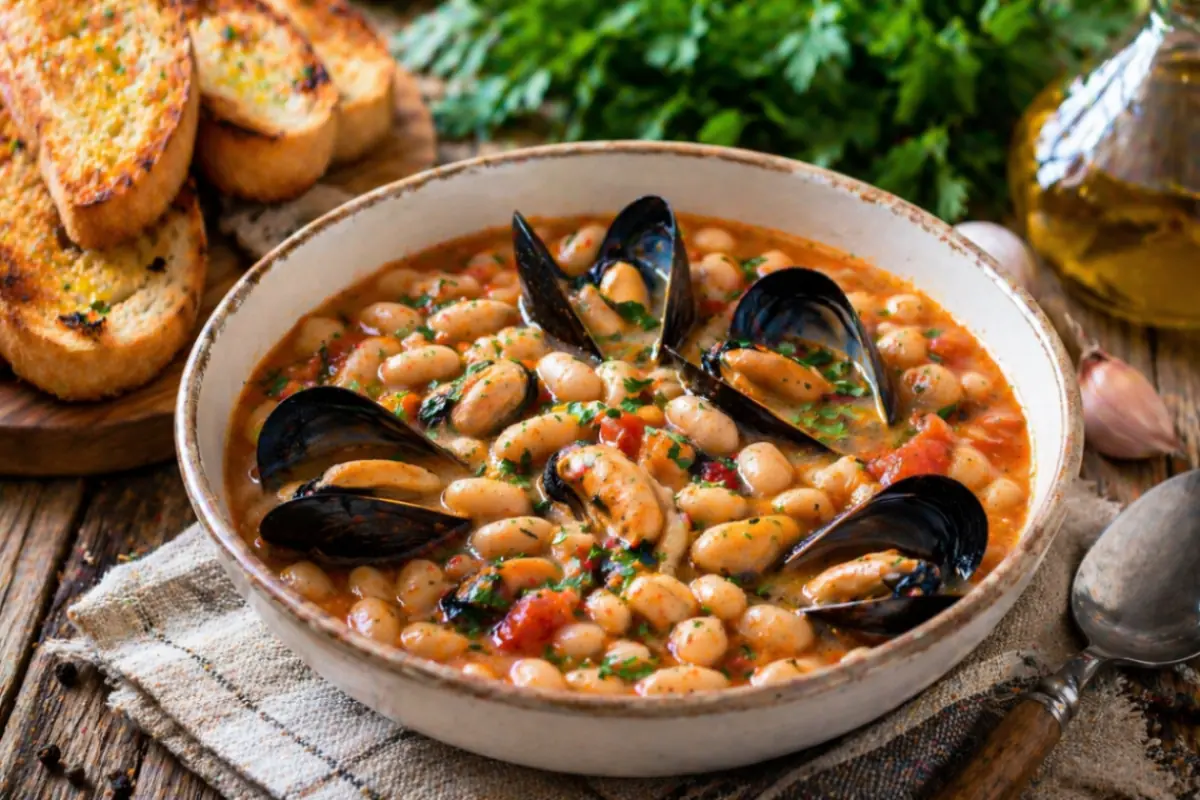 C’è il gusto pieno dei fagioli cannellini, morbidi e cremosi, e c’è quello più deciso delle cozze, che portano nel piatto una nota marina intensa ma mai invadente. Il risultato è una zuppa ricca, avvolgente, adatta a una cena in famiglia ma anche a una tavola un po’ più curata, quando si vuole proporre qualcosa di semplice senza cadere nel solito repertorio.
